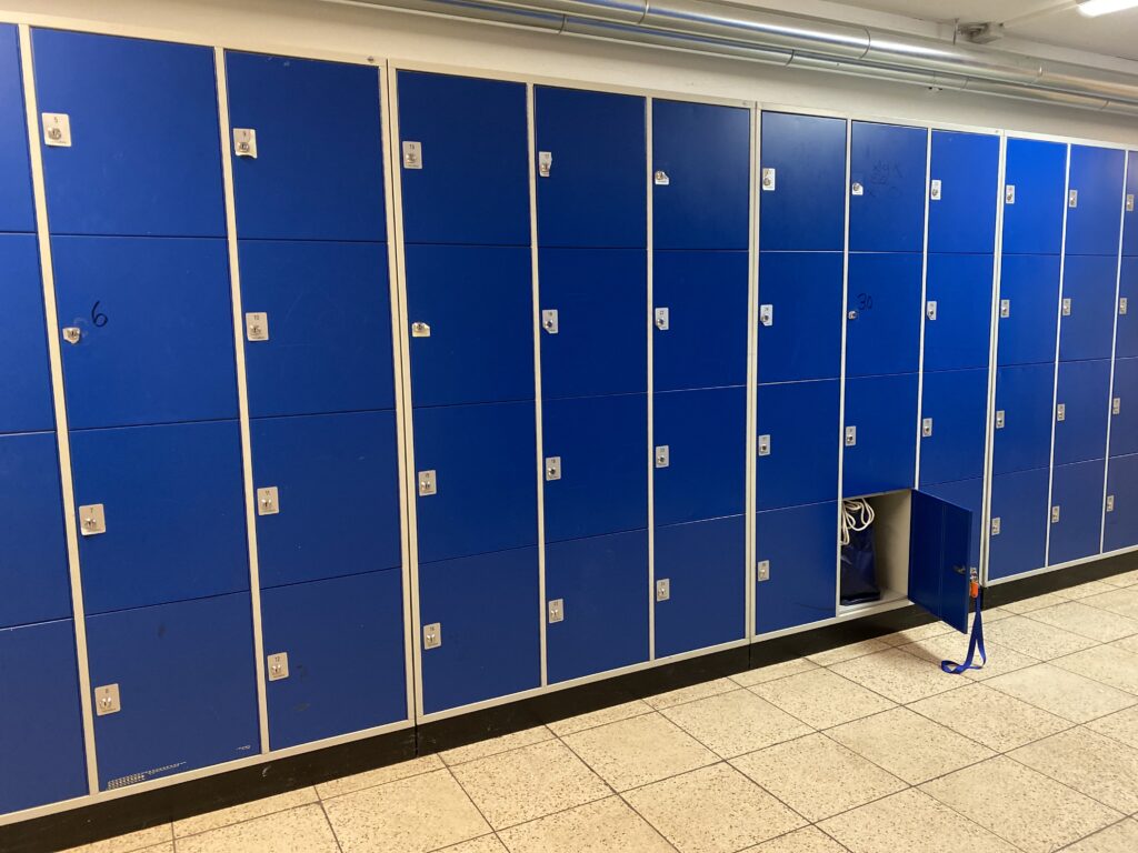 Vor rund 25 Jahren haben wir für unsere Schüler im Keller des Schulgebäudes abschließbare Schrankfächer aufgestellt, die zu einem Preis von Euro 30,- pro Jahr angemietet werden können.
